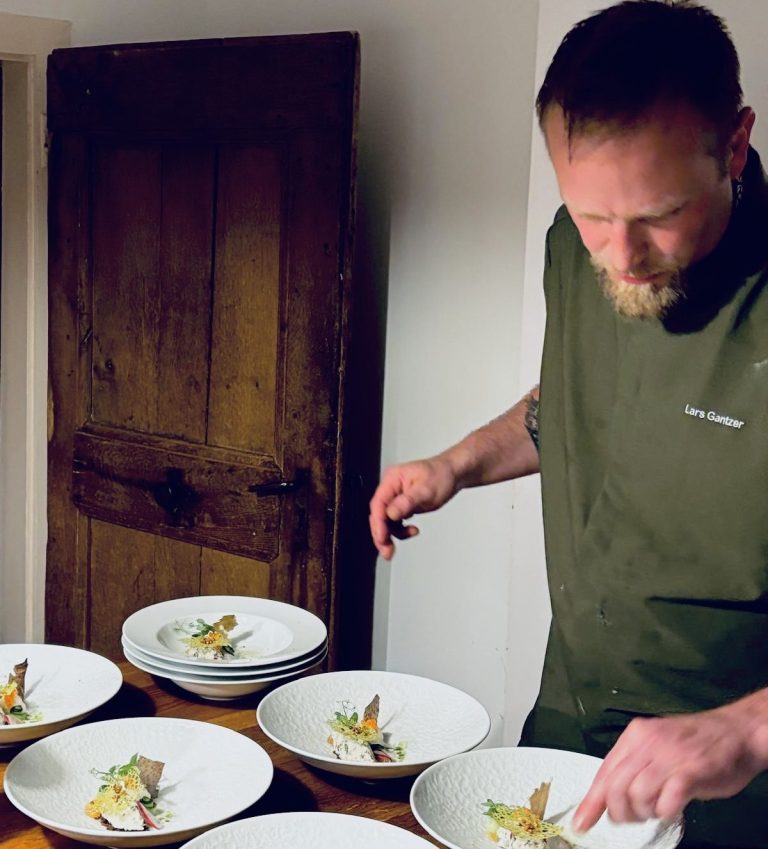„Naturgetriebene Spitzenküche, mit Fusion Elementen, klaren Aromen, erdigem Charakter und präzisem Handwerk – geprägt von Jagd, Wasser, Bergen und Feuer.“